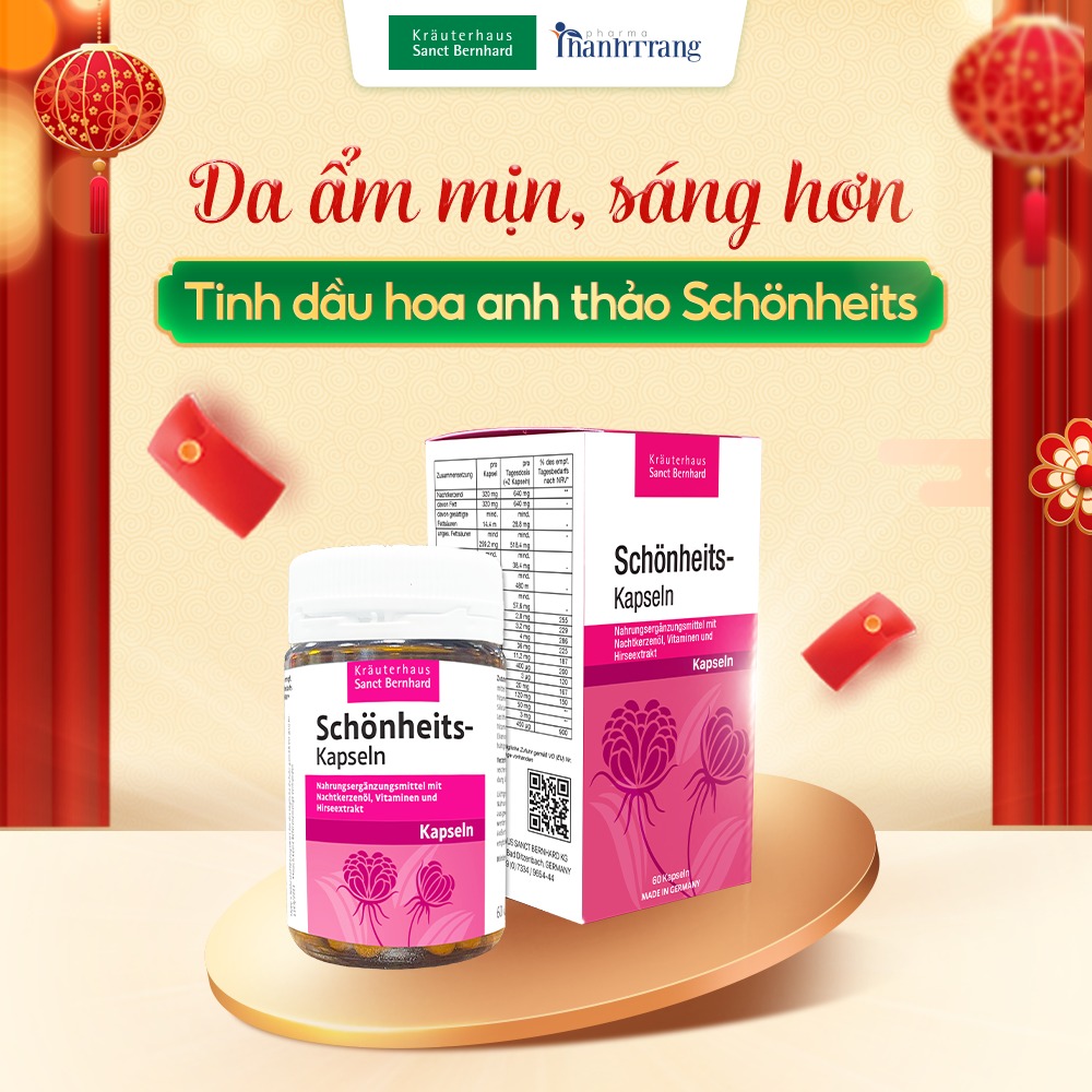 Tinh dầu hoa anh thảo Schönheits là viên uống hỗ trợ điều hòa nội tiết tố nữ, được nghiên cứu và sản xuất bởi Sanct Bernhard - thương hiệu chăm sóc sức khỏe lâu đời và uy tín đến từ Đức, chuyên phát triển các sản phẩm có nguồn gốc thiên nhiên, an toàn và đạt tiêu chuẩn chất lượng châu Âu.