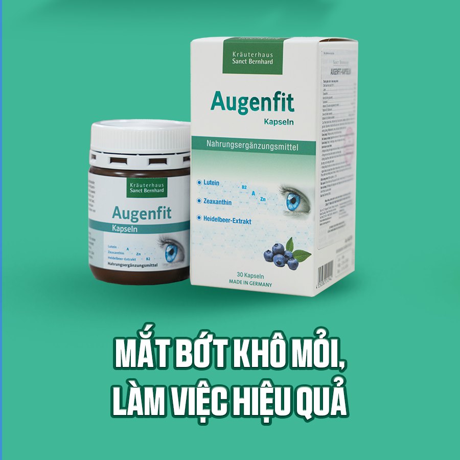 Bên cạnh việc bổ sung rau xanh đậm giàu Lutein hay cá hồi chứa Omega-3 để giảm khô mắt, dân văn phòng thường xuyên bị mờ nhòe nên sử dụng các thực phẩm bảo vệ sức khỏe chuyên biệt. Trong đó, viên uống Augenfit Kapseln của Sanct Bernhard là giải pháp được các chuyên gia khuyên dùng.