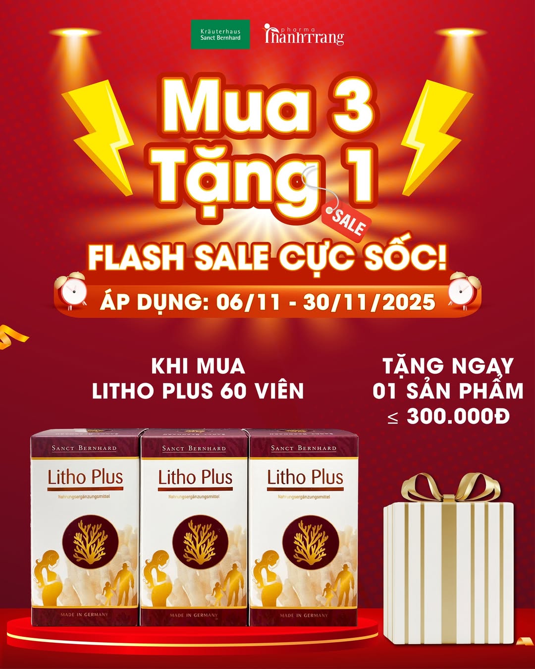Khi mua 03 hộp Litho Plus 60 viên – sản phẩm bổ sung canxi hữu cơ từ tảo biển đỏ Lithothamnium, hỗ trợ duy trì sức khỏe xương khớp, giảm nguy cơ loãng xương và tình trạng xương giòn yếu – thầy cô sẽ có cơ hội nhận ngay 01 quà tặng trị giá ≤ 300.000đ hoàn toàn miễn phí.
