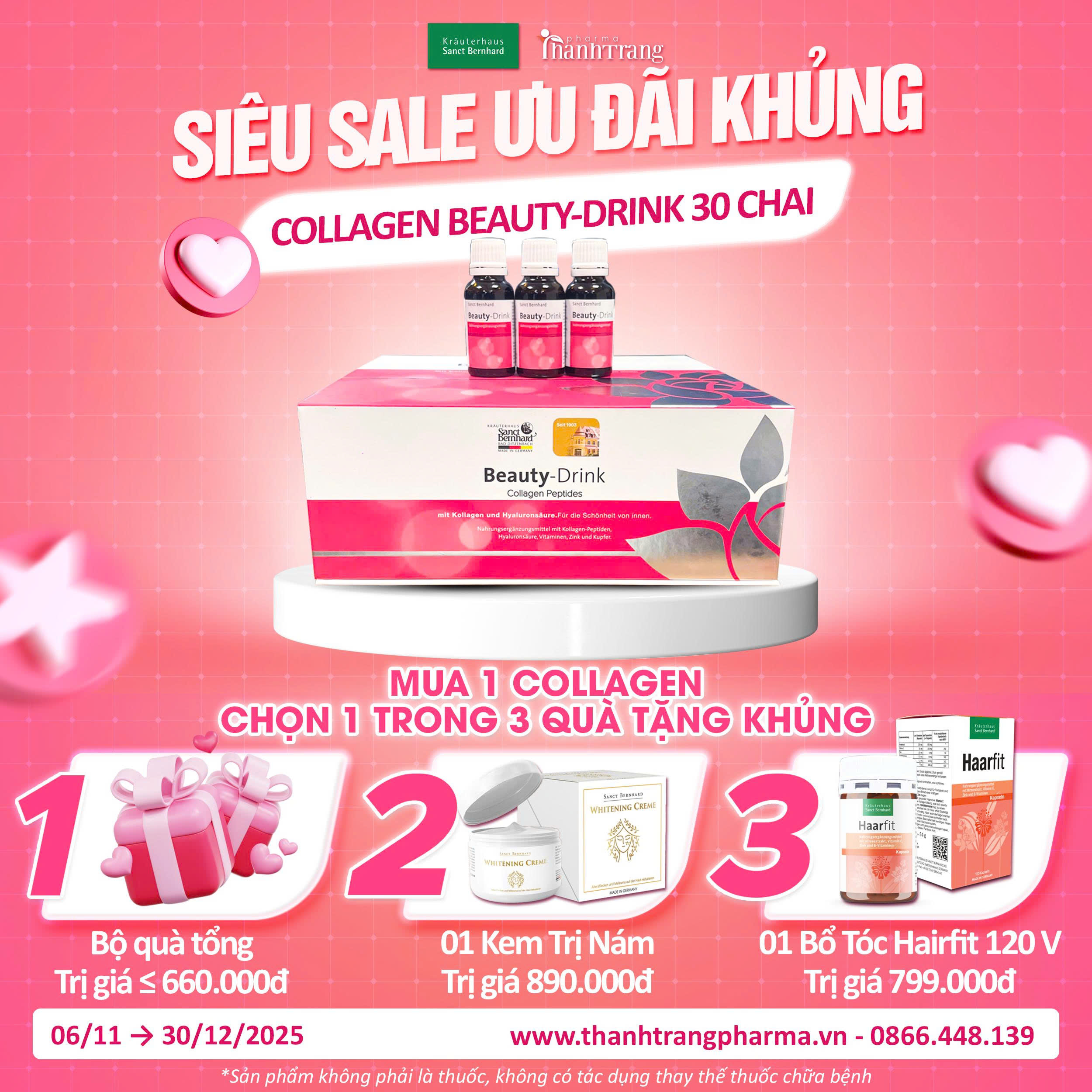 Khi mua 01 hộp Collagen Beauty Drink (30 chai), thầy cô sẽ được chọn một trong ba quà tặng giá trị đến từ Sanct Bernhard: